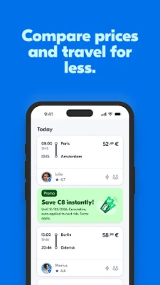 Con **BlaBlaCar**, ogni viaggio si trasforma in un'opportunità unica. Sia che tu stia pianificando un lungo tragitto o un breve spostamento, la nostra piattaforma rivoluziona il modo di muoversi, mettendo in contatto milioni di persone che condividono la stessa direzione. Unisciti alla nostra vasta comunità e scopri la libertà di viaggiare in modo intelligente, economico e sociale. **BlaBlaCar** è la soluzione ideale per chi desidera ottimizzare le proprie spese o semplicemente trovare un compagno di viaggio per esplorare nuove destinazioni.