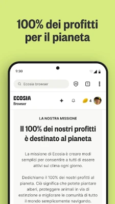 Cerca con Ecosia e trasforma ogni ricerca in un albero piantato. Il 100% dei profitti di Ecosia finanzia progetti di riforestazione globali. Unisciti a milioni di utenti che contribuiscono a un futuro più verde, una ricerca alla volta.